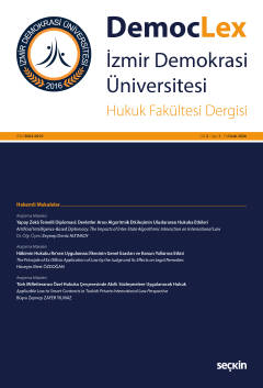 • İlk makalemiz, teknolojik devrimlerin uluslararası sisteme entegrasyonuna odaklanarak, devletlerin diplomasi süreçlerinde yapay zekâ kullanımının doğurduğu "algoritmik diplomasi" olgusunu ele almaktadır. Çalışma, otonom ve algoritmik karar alma süreçlerinin devlet egemenliği, müdahale yasağı ve uluslararası sorumluluk gibi temel uluslararası hukuk ilkelerini nasıl yeniden şekillendirdiğini ve bu alanda doğan normatif boşlukları analiz etmektedir.