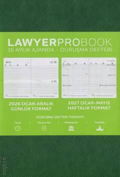 16 aylık duruşma defteri formatı Ajanda, 2026 yılının 12 ayını günlük formatta ve 2027 yılının 4 ayını haftalık formatta içerecek şekilde 16 aylık duruşma defteri olarak tasarlanmıştır. Bu format, avukatların duruşma tarihlerini ve bir sonraki seneye devreden işleri takip etmesini kolaylaştırır.